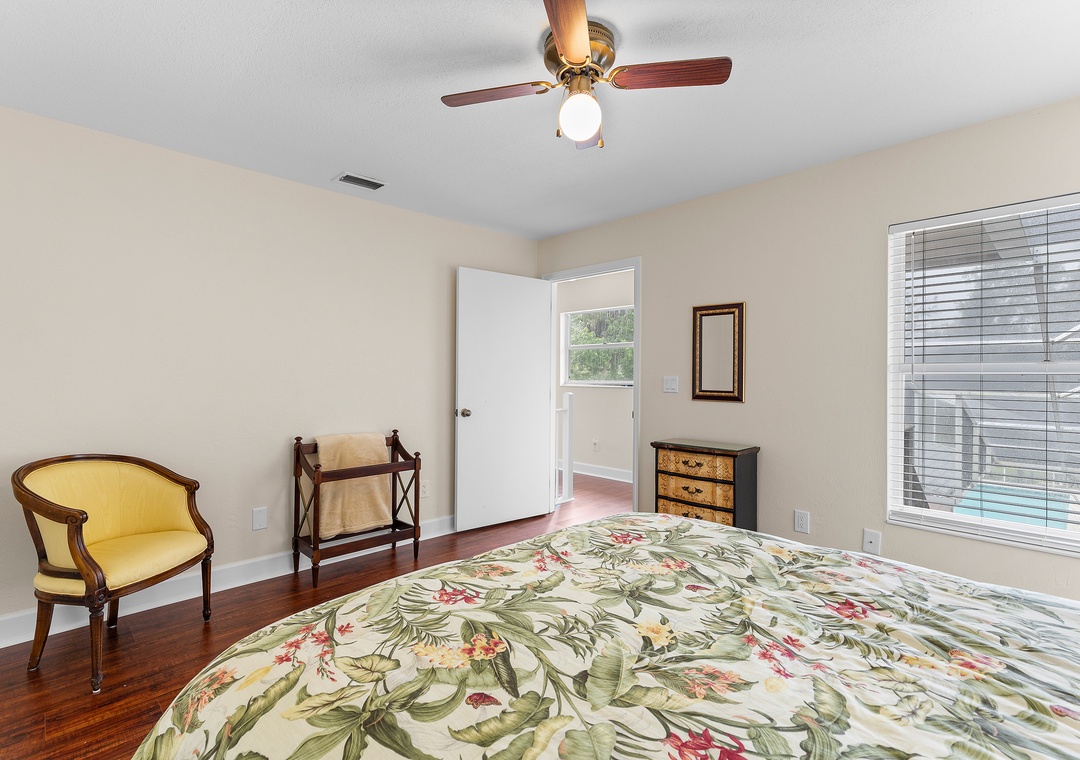 Guest Bedroom: Queen Bed with Pool Access