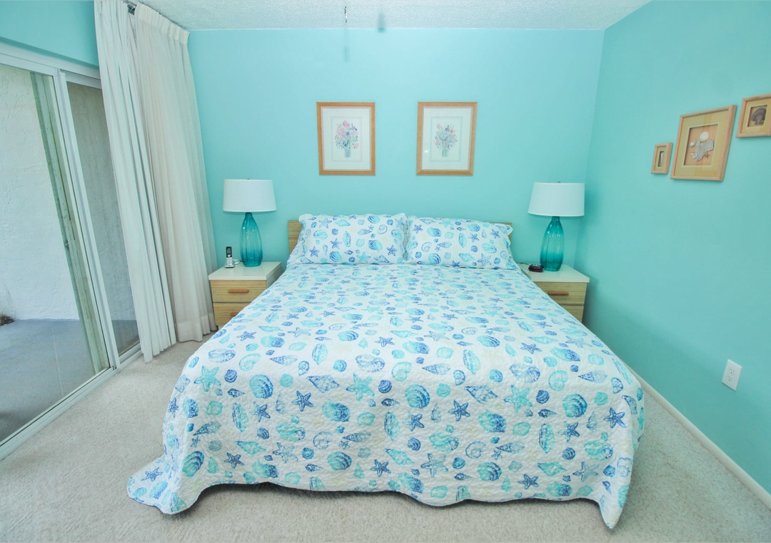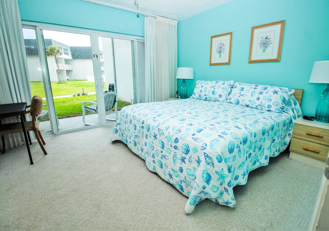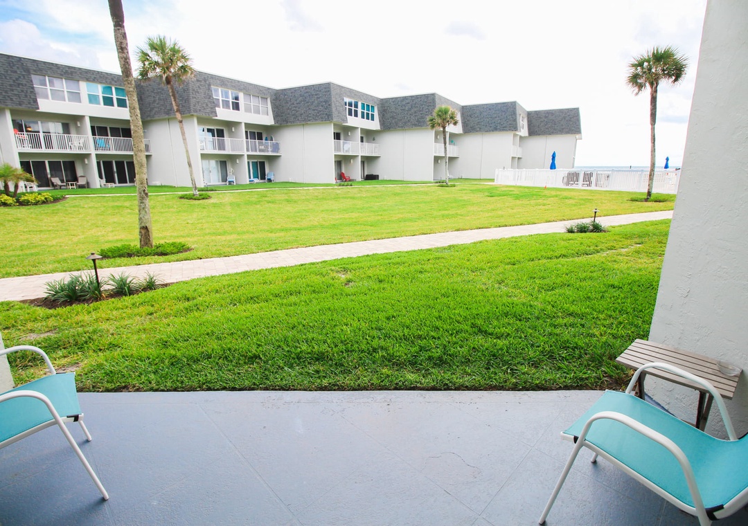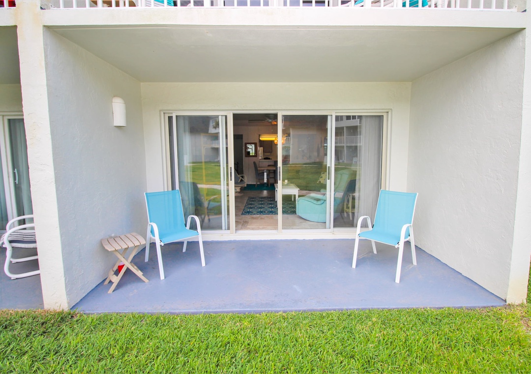 The early risers in your group will love sipping coffee on the patio to the ocean sunrise each morning. Along with an ocean view, the patio is steps from the complex pool and non-driving beach. The patio is the perfect spot for towels and snacks as you go back and forth from the pool to the beach.