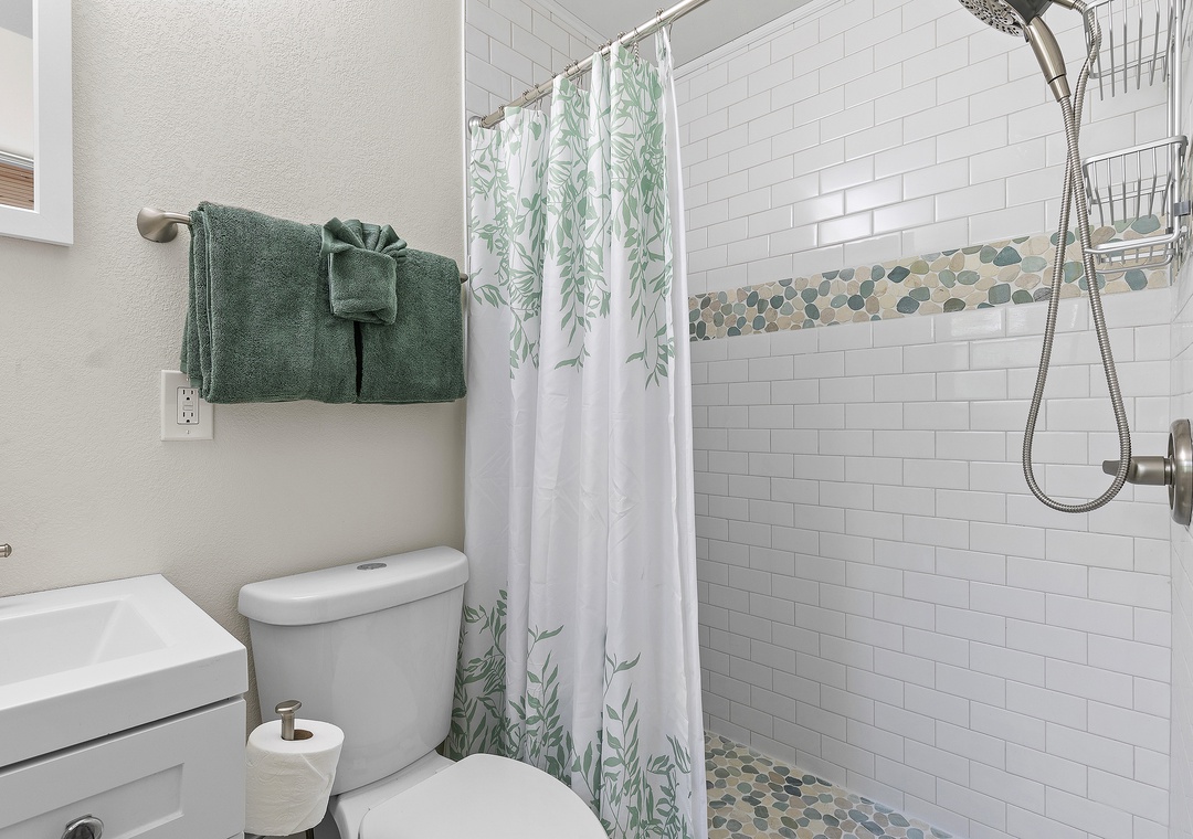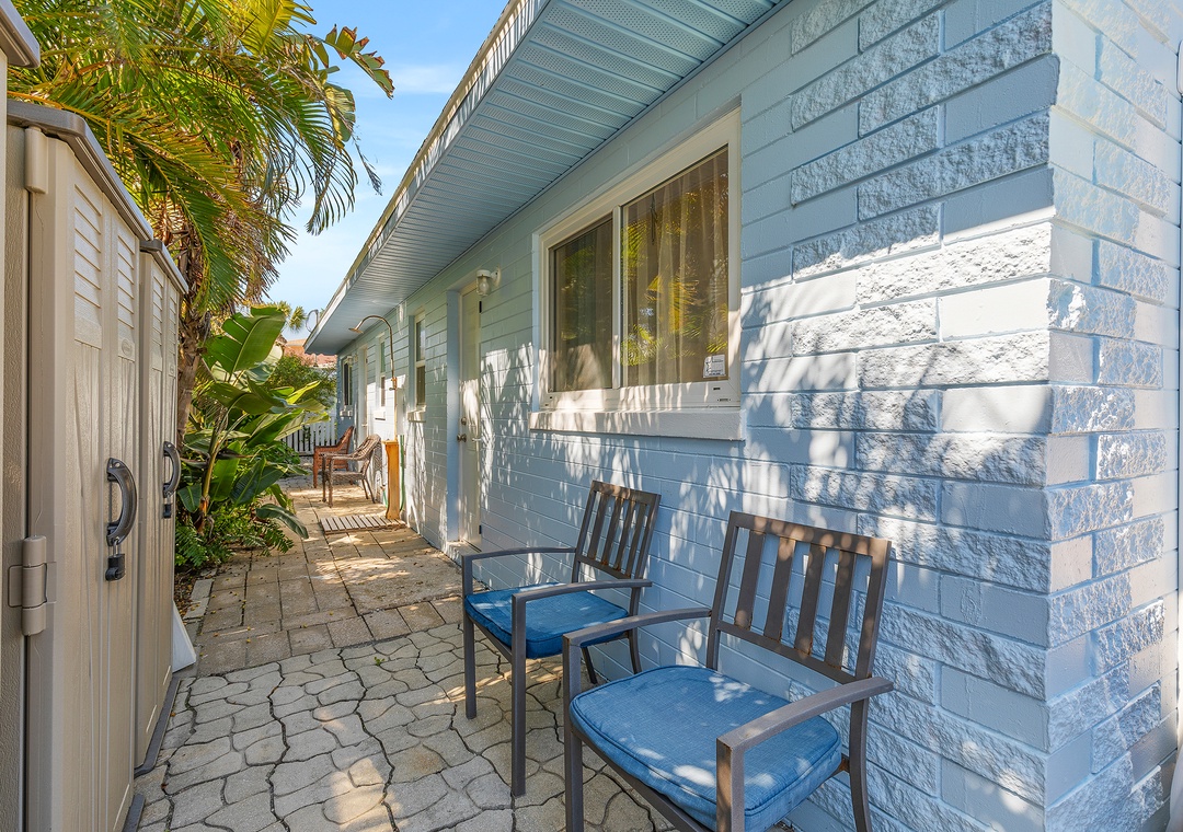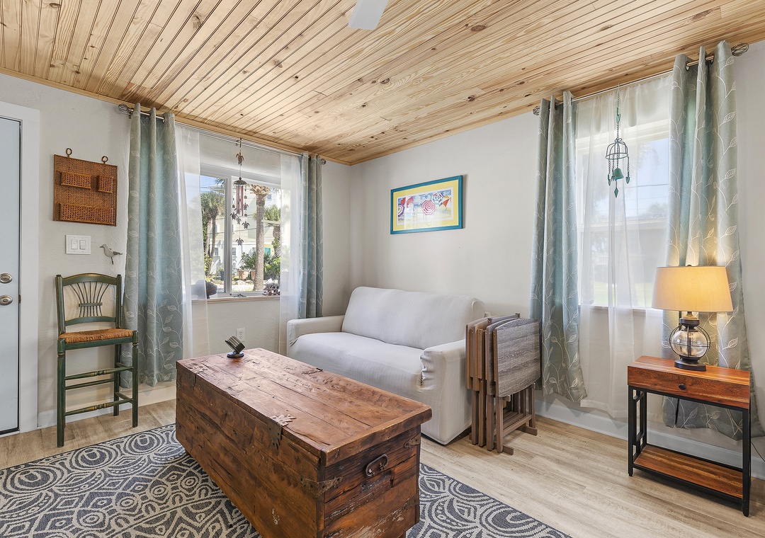 You won’t need a car here — everything is within walking distance — but there’s parking for two vehicles if you’d like to explore more of the area. After a day at the beach, rinse off in the outdoor shower and relax in your cozy coastal retreat.
