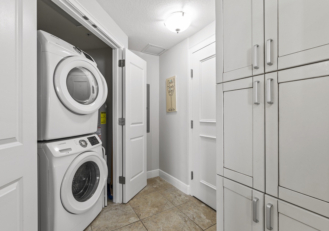 The condo is equipped with plenty of linens, towels, beach chairs, and all the conveniences of home to make your stay comfortable. There is an in-unit washer/dryer, cable TV, wireless internet, Keurig coffee maker and seating for six around the dining table.