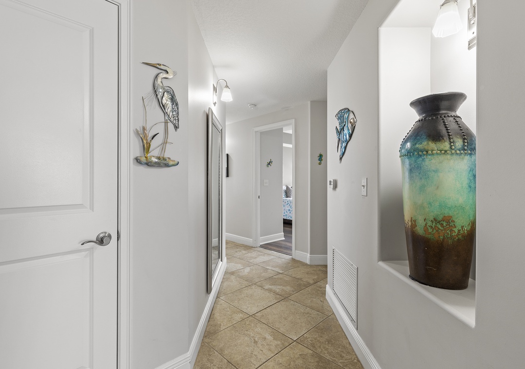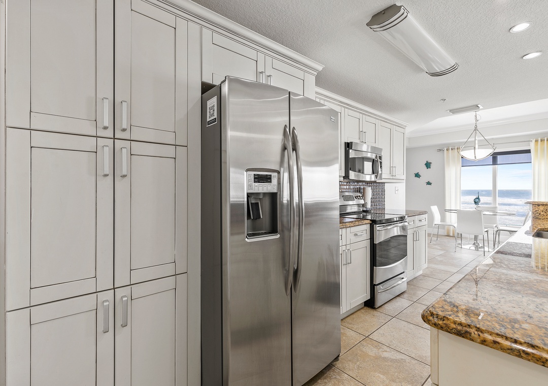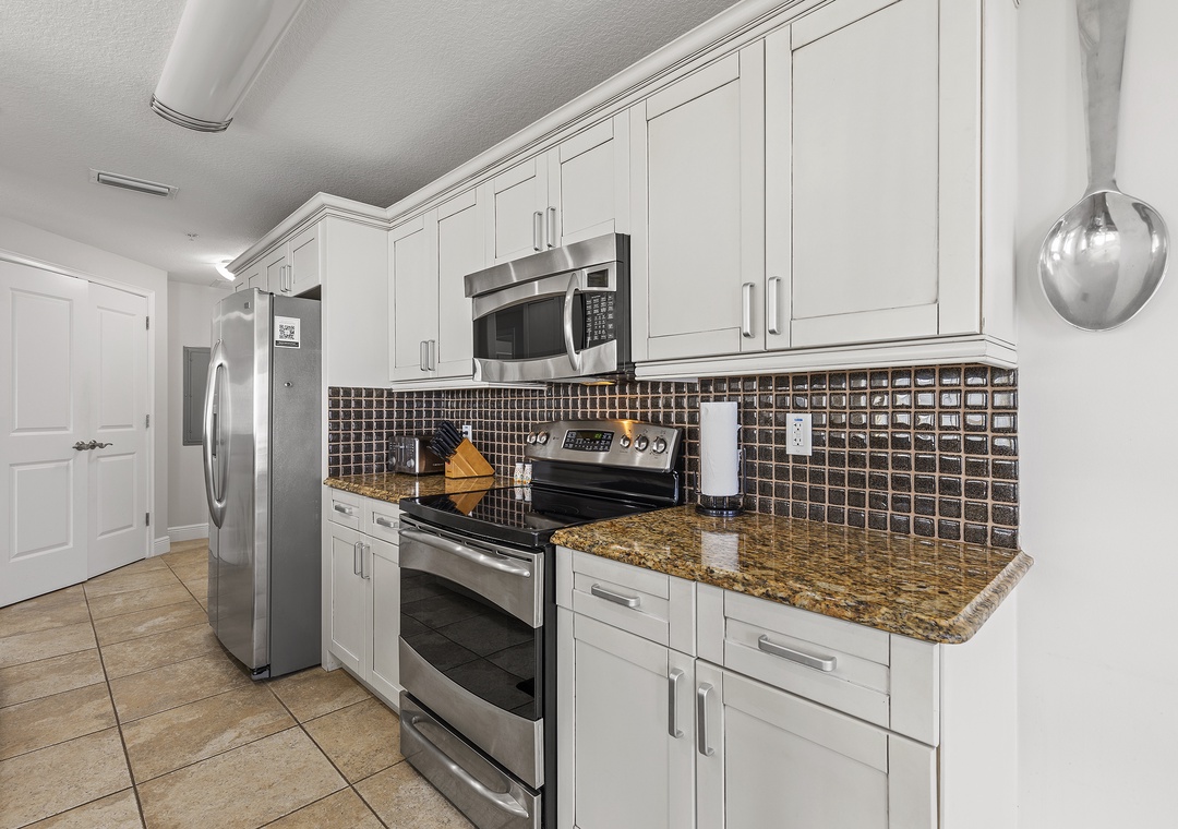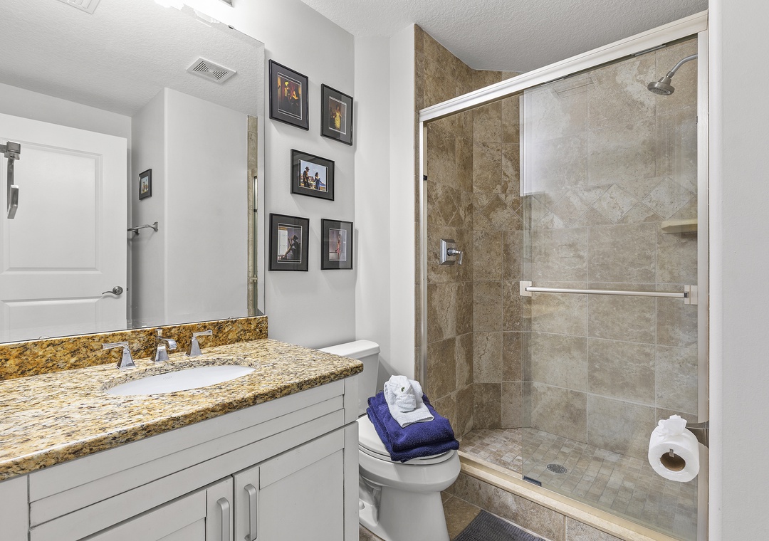 After a day filled with beachside relaxation, you'll find the master bedroom the perfect place to continue relaxing and catch up on some rest. You'll love ending each day snuggled in the king bed. The adjoining master bathroom provides a granite-top vanity, a standard bathtub, and plenty of bath towels. The second guest bedroom provides a cozy queen bed and a flat-screen TV. Similar to the master, a bathroom is attached ensuite and offers guests a walk-in shower, granite-top vanity, and plush towels. The third bedroom is furnished with a full bed and a TV. The nearby bathroom provides a walk-in shower with a white vanity and bath linens. While there is no cable in the bedrooms, they are all equipped with smart TVs enabled with Hulu and Netflix.