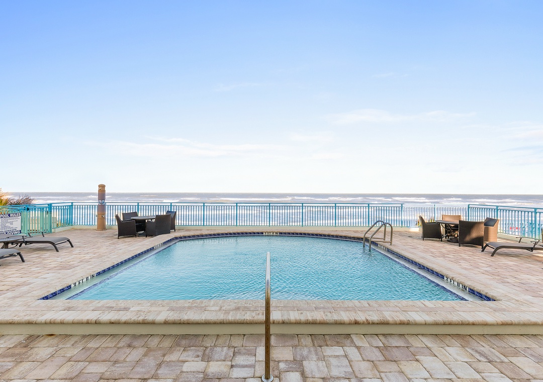While this condo is tastefully arrayed with high-end features and décor, its most breathtaking showstopper is the direct oceanfront balcony. This third-floor balcony not only looks onto the driving section of New Smyrna Beach but also is perched over the complex's pool and patio area.