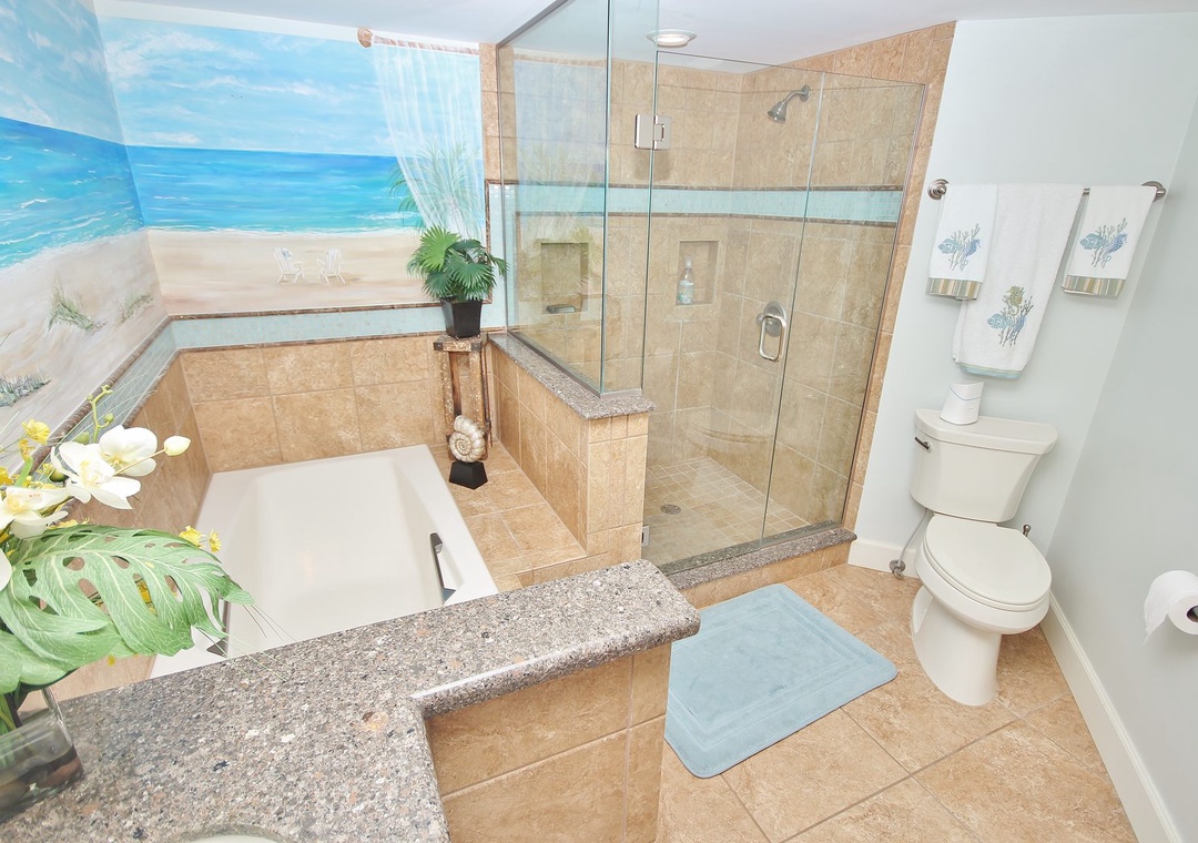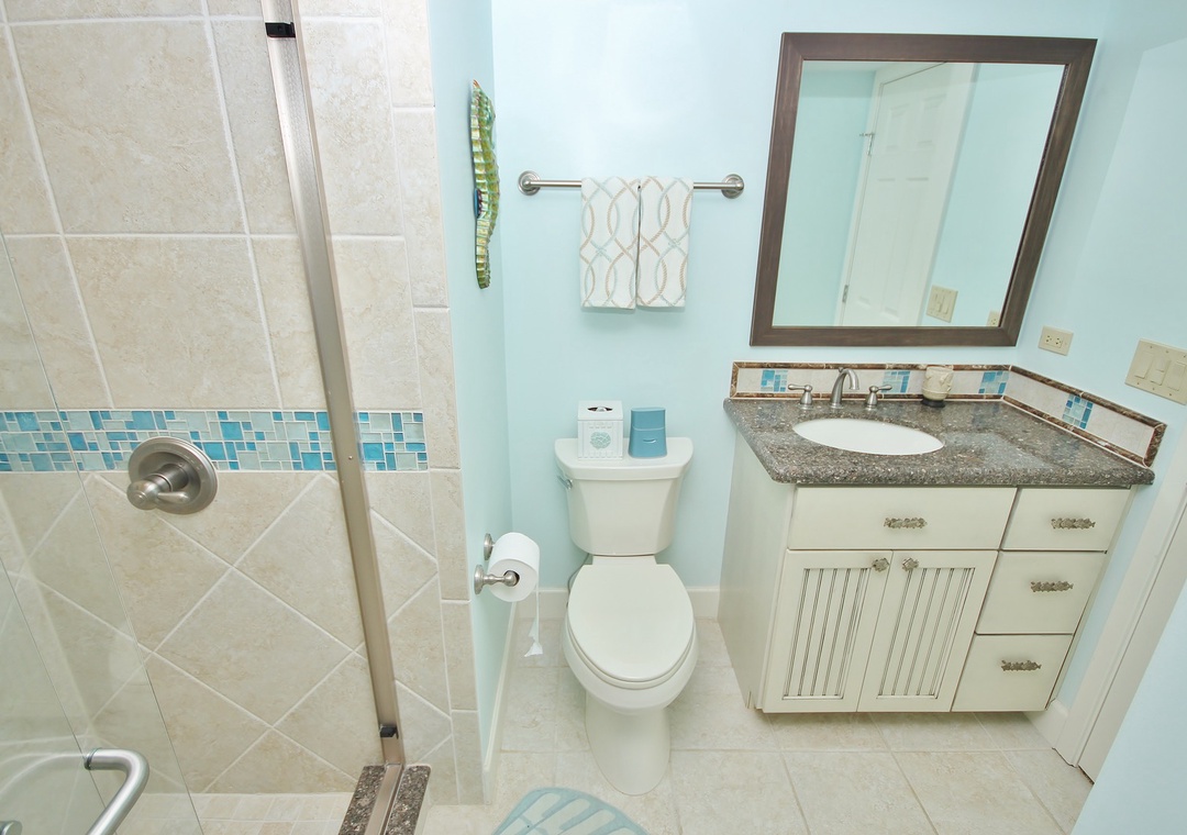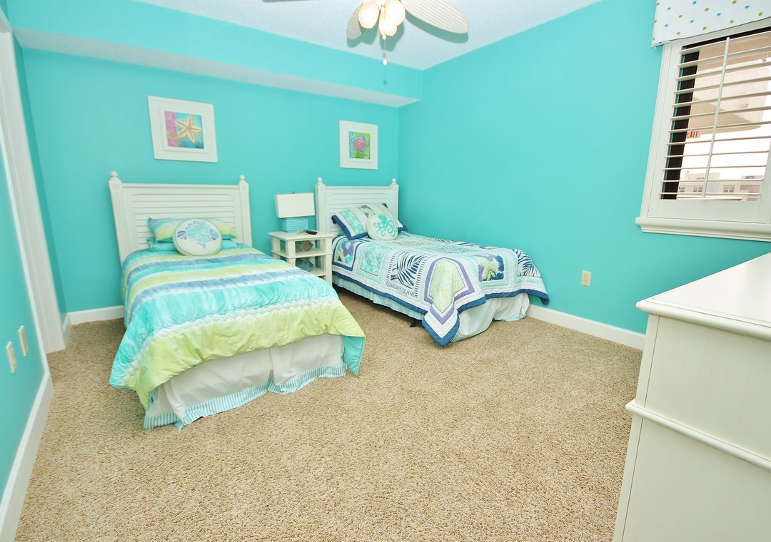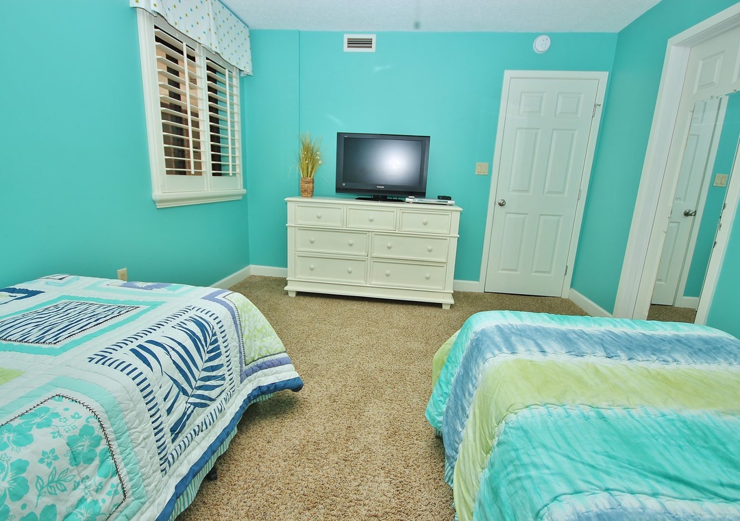 The second bedroom offers two twin-sized beds. Your guests will enjoy the television and comfortable furnishings. This bedroom also features an additional bathroom with a beautiful walk in shower. Bed linens and towels are provided for all guests to use during your stay.