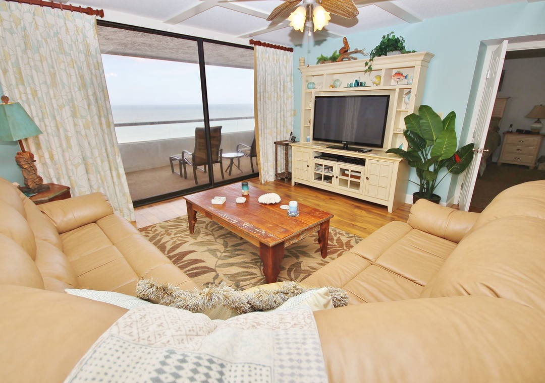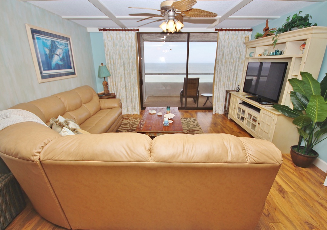 Tradewinds 503 is the perfect spot to call home during your New Smyrna Beach vacation. This condo offers a magnificent view, loads of space and is beautifully decorated. As you enter, you will notice the open concept and the amazing large updated kitchen. With stainless steel appliances, this kitchen will wow you and your guests. The living room has one big wrap around couch that can seat everyone around the large television. You and your guests will love all the space in the main living area. Lounge around in the air conditioning after a long day at the beach on the comfy sofa!
