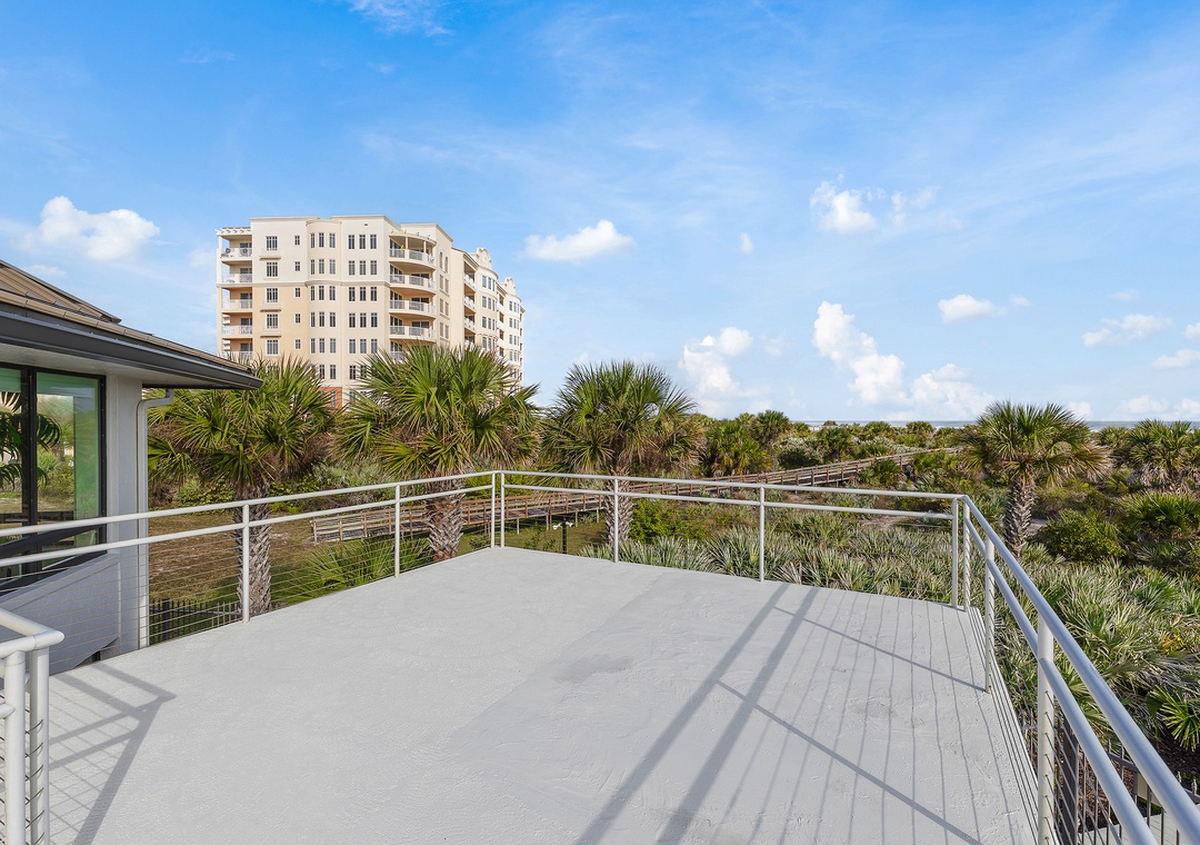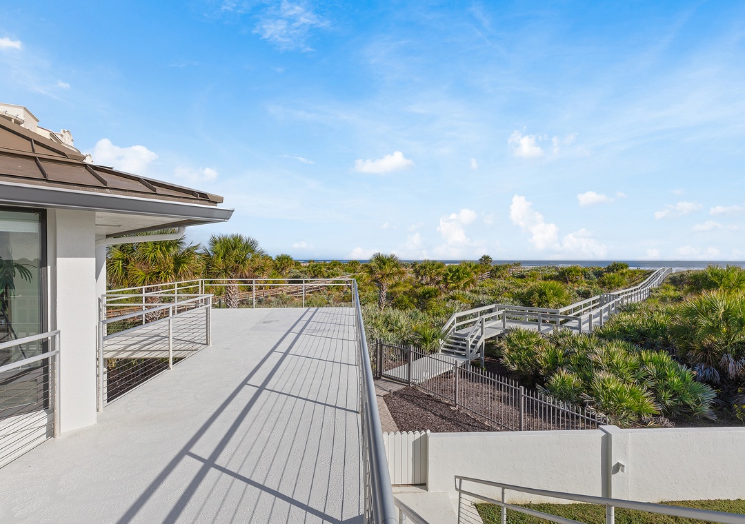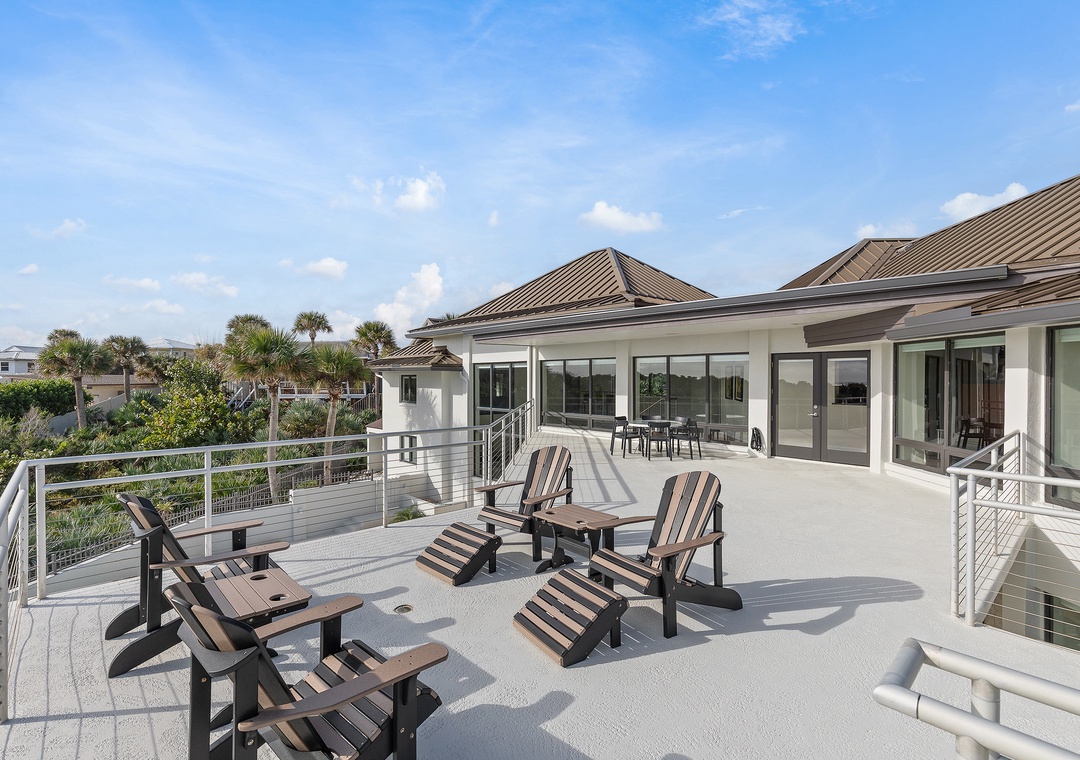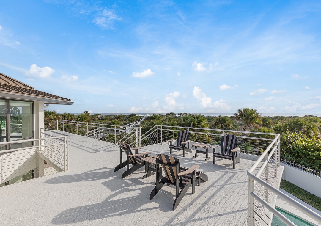 The upper-level deck is a fantastic spot to take in sweeping views of the beach, whether you’re sipping your morning coffee or watching the sunset paint the sky.