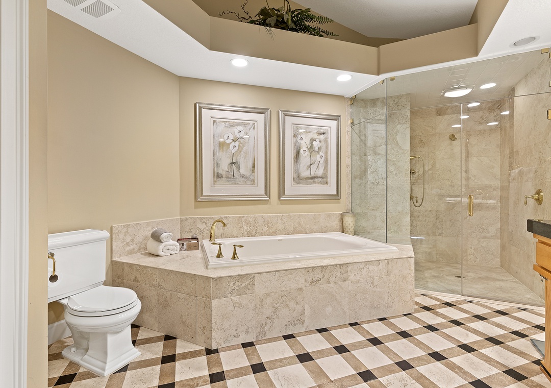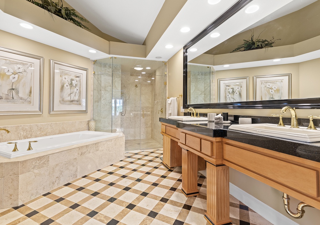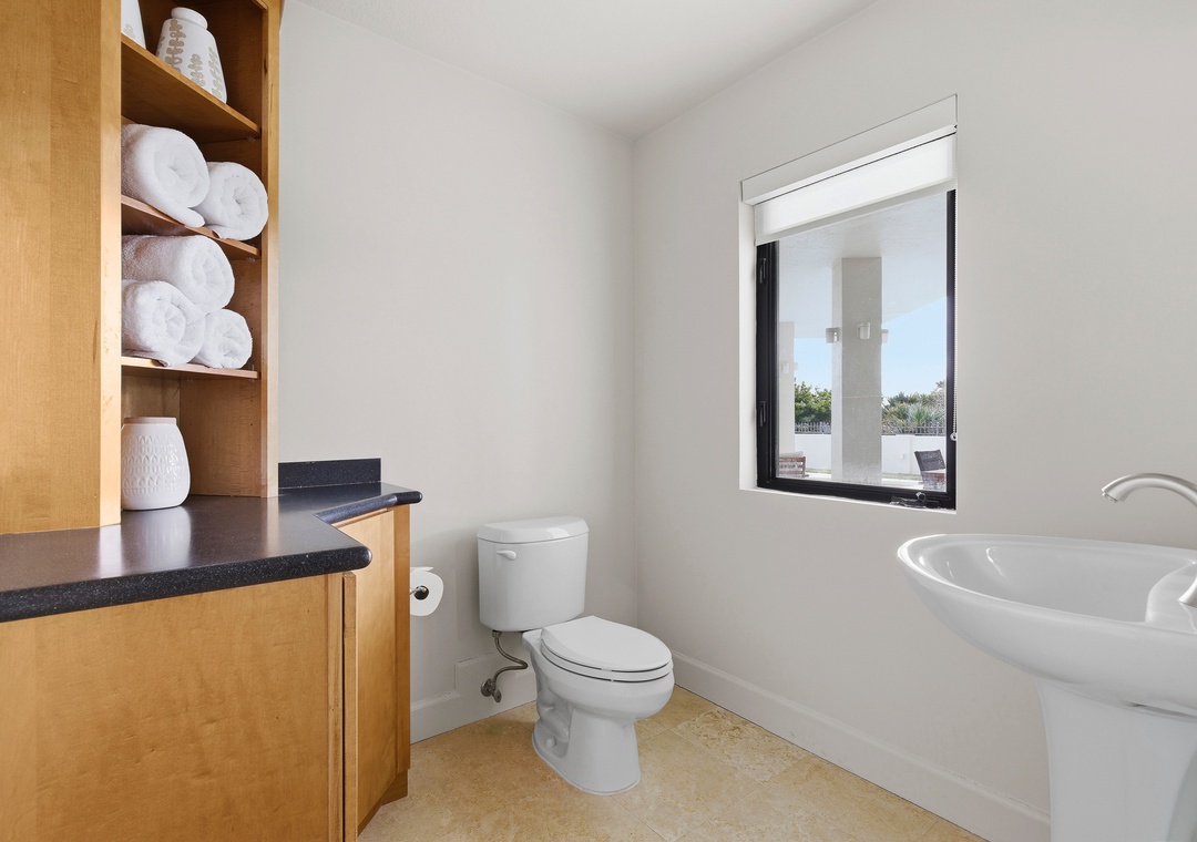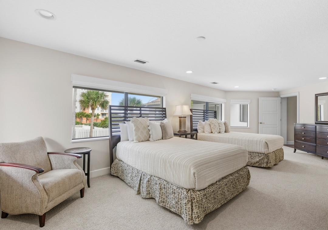Primary Bedroom: For ultimate comfort, the primary suite is located on the upper level, offering ocean views, a king bed, and a private balcony accessed from hall. The adjoining bathroom pampers with a double vanity, soaking bathtub, and a walk-in shower with showerhead and handheld showerhead for the ultimate spa-like experience. The huge walk-in closet completes the ensuite.