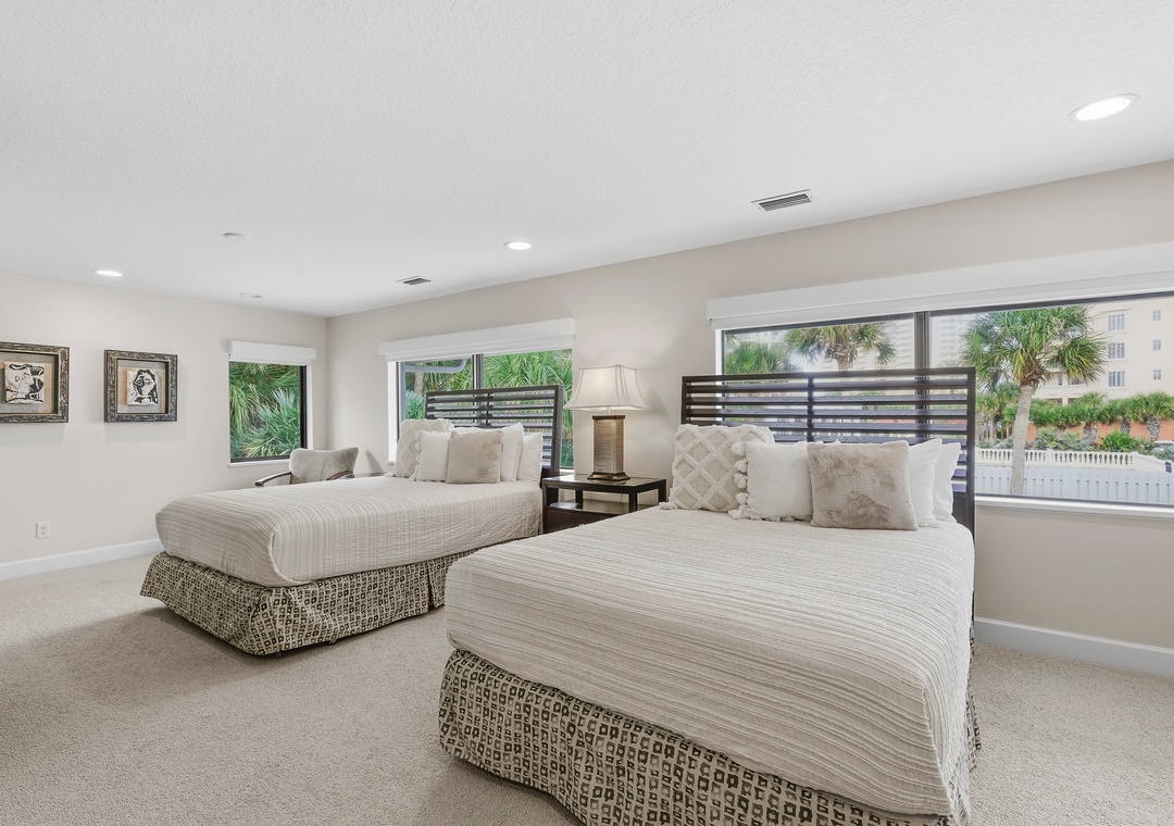 Guest Bedroom: Main Level, two Queen beds, no TV, with en-suite featuring a shower and roomy closets.