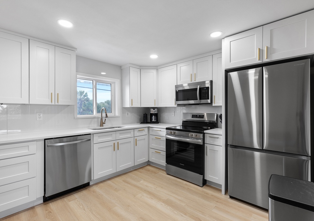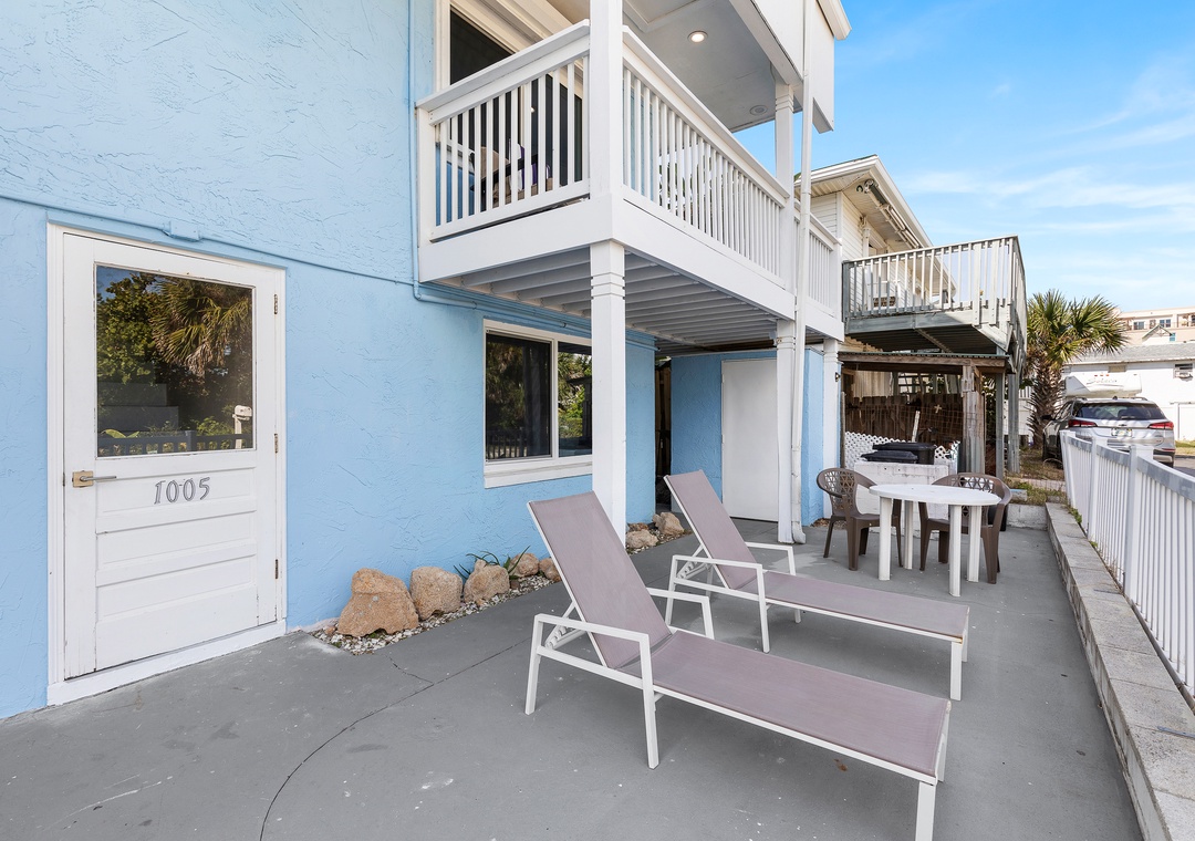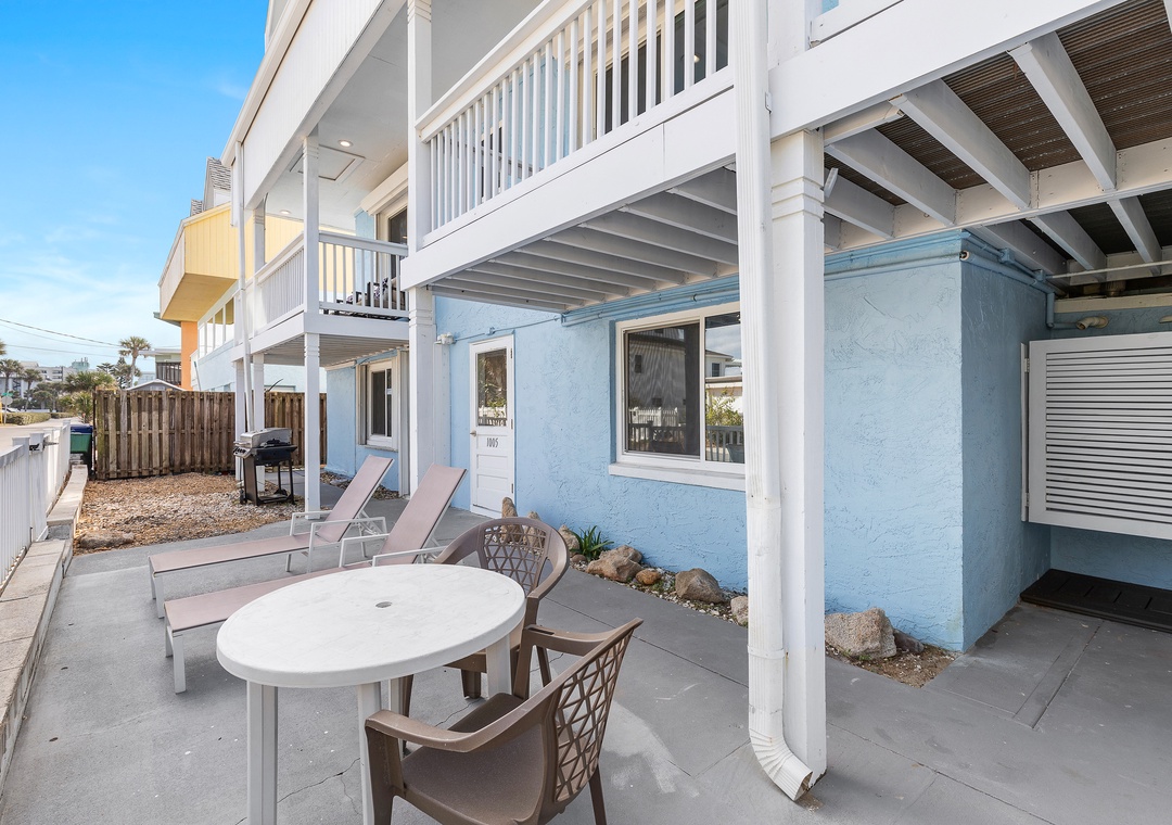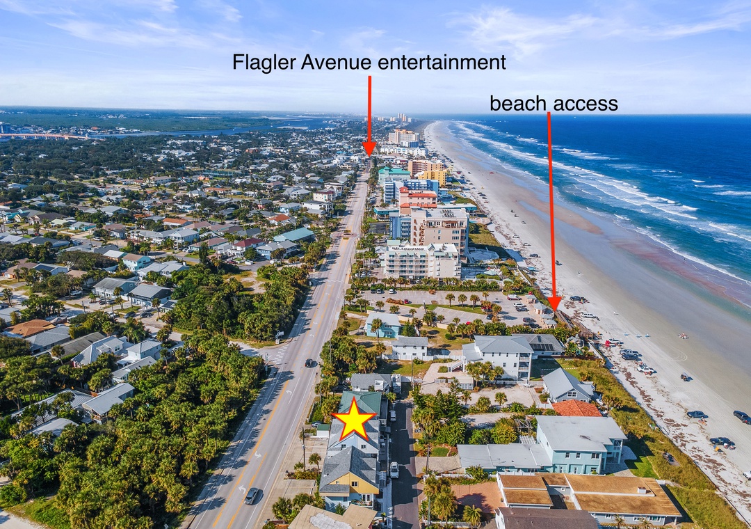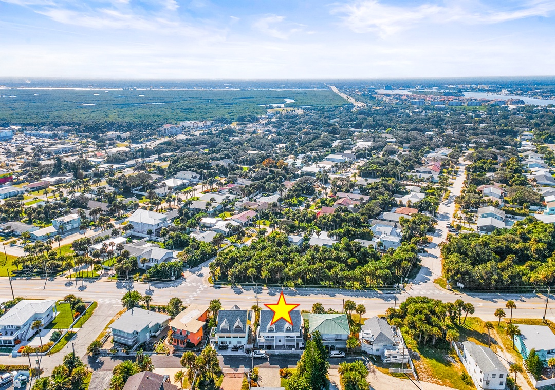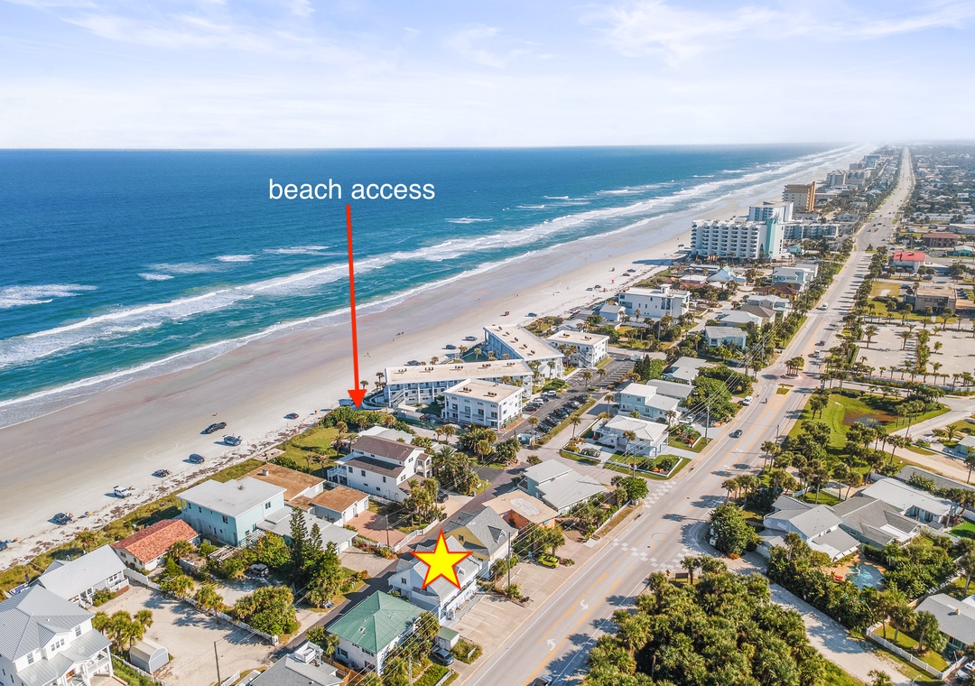 This beautifully renovated 7-bedroom, 6-bath luxury coastal charmer beach house sits on A1A and Hill Street, perfectly positioned for both stunning ocean views and easy access. The home’s patio and balconies face the ocean along Hill Street, offering the ideal spot to relax and enjoy the sea breeze, while parking is conveniently accessible directly from A1A. Spanning three levels, the property features three separate, but easily connected by corridor, units—each with a private entrance, full kitchen, living room, and washer/dryer—making it perfect for large families or groups who want to vacation together while still having their own space. The first-floor unit offers three bedrooms and two bathrooms, all on one level for added convenience. The second and third units mirror each other, each with two bedrooms and two bathrooms, open-concept living and kitchen areas on the second floor with sleeper sofas, separate balconies, and third-floor bedrooms. With five parking spaces, an outdoor grill, and a private outdoor shower, this home blends modern luxury with coastal charm. Located between two public beach access points and pet-friendly (up to two pets, no weight limit), this stunning property accommodates up to 21 guests, offering the perfect blend of comfort, privacy, and seaside relaxation.