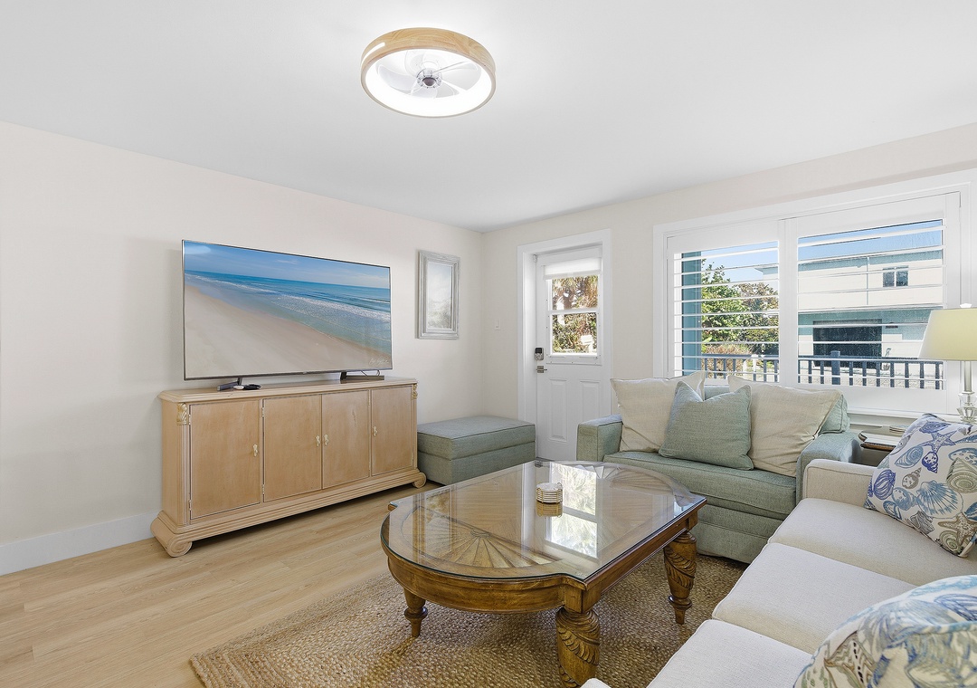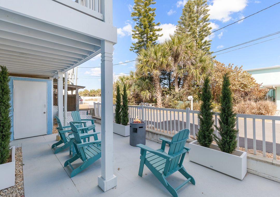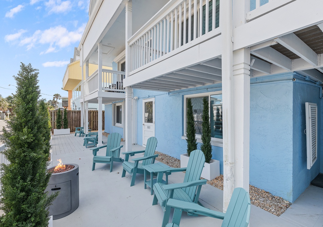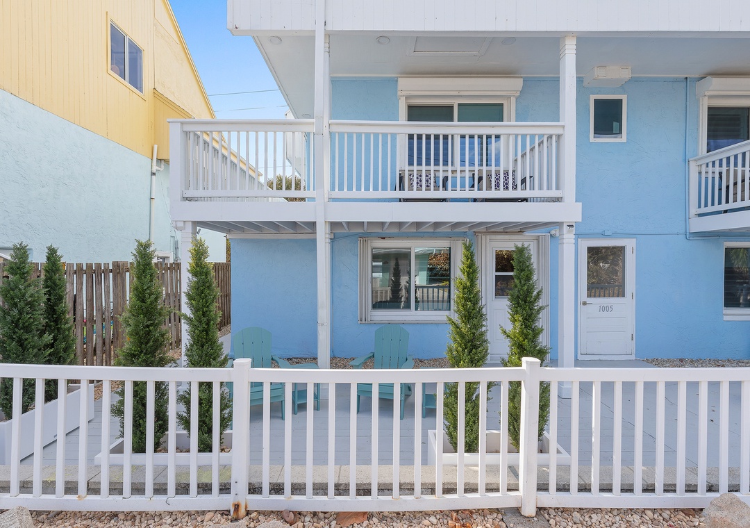 Step into your dream beach getaway! This fully renovated first-floor coastal charmer has everything you need for the perfect stay—all on one easy level. With three comfy bedrooms and two sparkling bathrooms (both with walk-in showers), there’s room for everyone to relax and unwind. You’ll love the roomy king bedroom, cozy queen bedroom, and a fun daybed with trundle and ensuite bath—plus extra sleeping space with a twin sleeper sofa and a queen sleeper sofa in the living area. Whip up meals in the modern full kitchen, toss in a load of laundry with your in-unit washer and dryer, and then head out to the shared ocean-view patio to soak up the breeze. Gather around the firepit under the stars or fire up the gas grill for a family cookout after rinsing off in the outdoor shower. Pet-friendly with no weight limit, this bright and breezy beach retreat is all about comfort, convenience, and coastal fun—just steps from the sand!