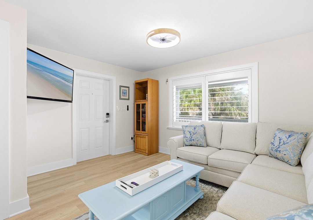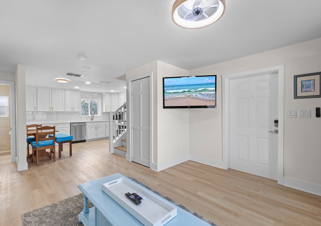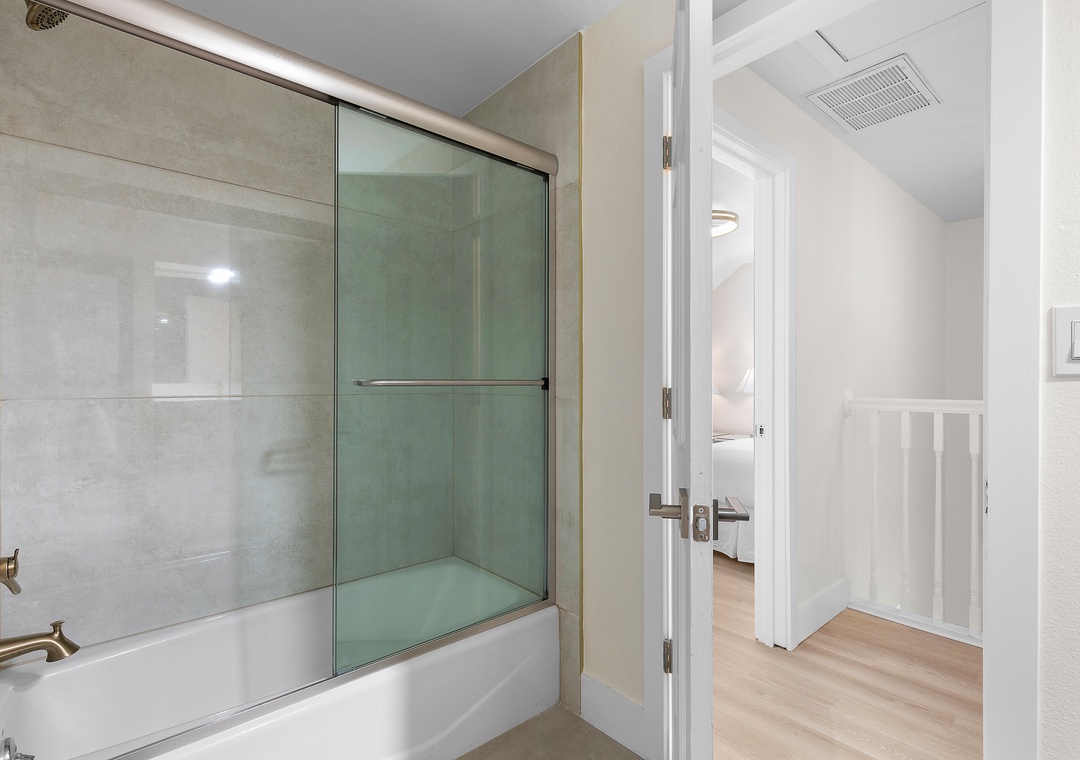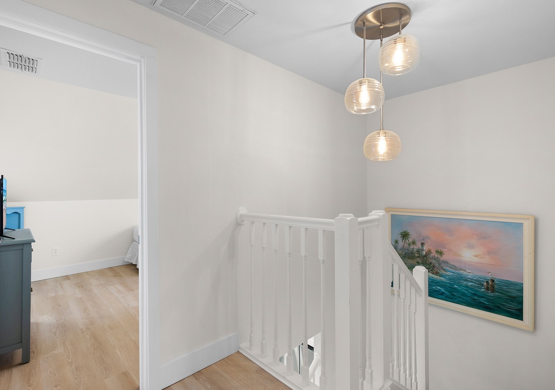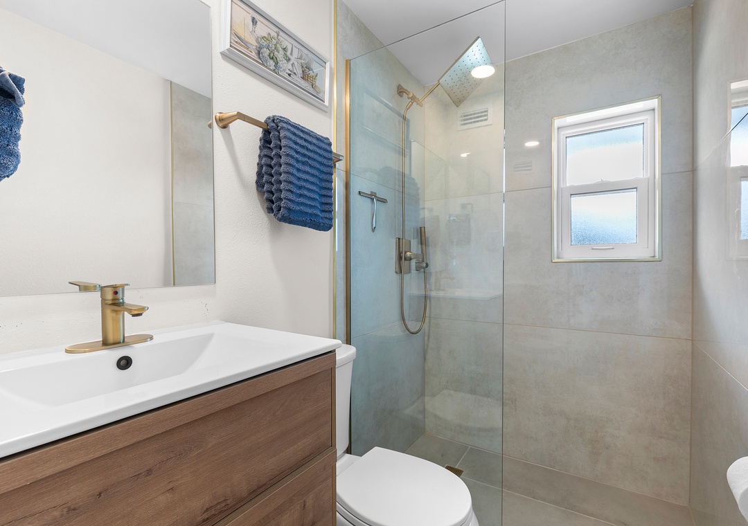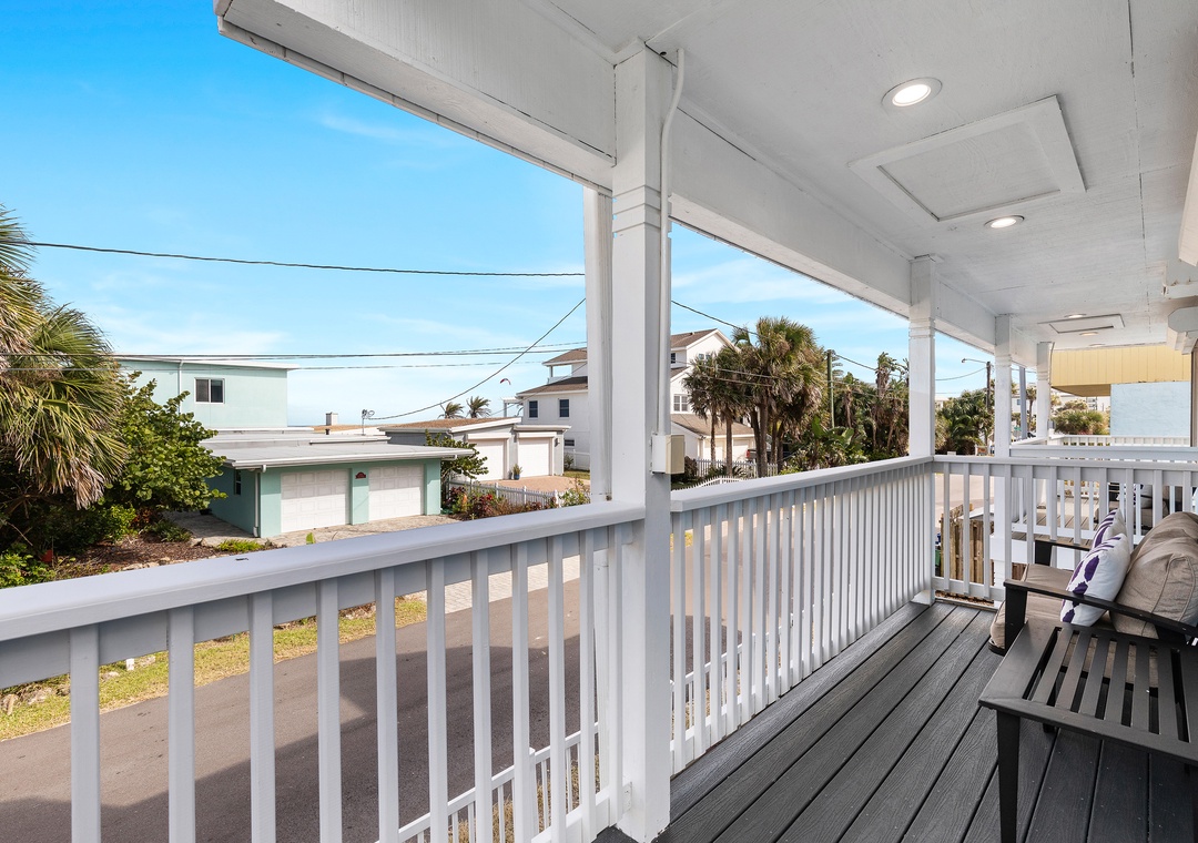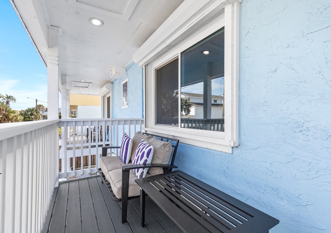 Your oceanview getaway begins the moment you step into this beautifully renovated two-story coastal retreat! Perched above street level, this private unit occupies the 2nd and 3rd floors of the home, offering both privacy and stunning views. Enter from your own private exterior staircase or through the interior hall entrance, then relax on your private 2nd-floor balcony with outdoor seating—perfect for morning coffee or evening cocktails in the sea breeze. Inside, you’ll find a bright, open living area with a comfy sleeper sofa, a full eat-in kitchen, and a sparkling bathroom with a walk-in shower. Upstairs, the 3rd floor features a serene king bedroom with breathtaking ocean views, a cheerful bedroom with two twin beds, and a second full bathroom with a shower/tub combo. For your convenience, there’s also an in-unit washer and dryer on this level. Guests enjoy shared access to the ground-level patio, outdoor shower, firepit, and grill—ideal for unwinding after a day at the beach. With space for up to six guests, this modern, light-filled retreat combines coastal charm, comfort, and effortless beachside living.