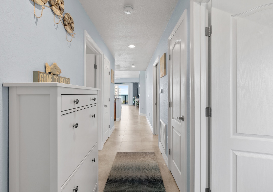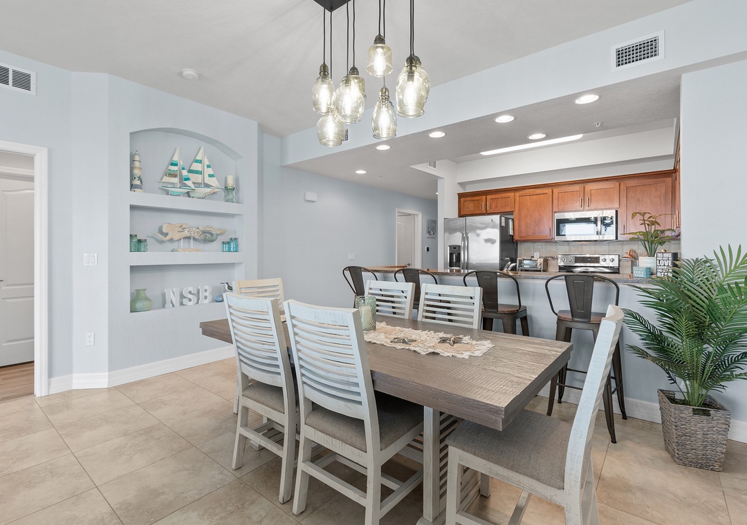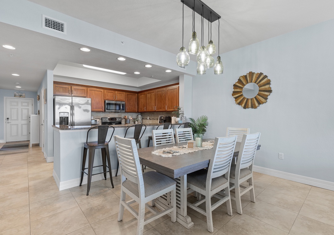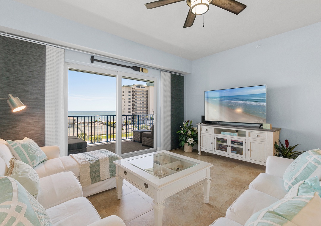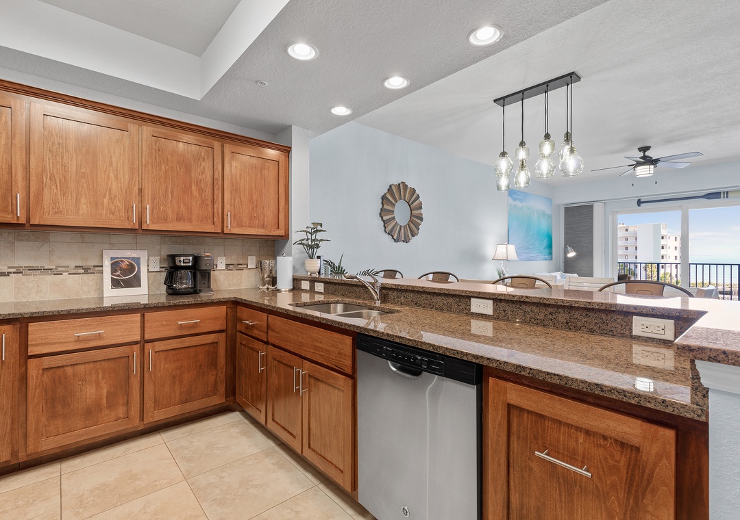 Step inside to discover a bright and airy open floor plan with plenty of natural light, thoughtfully furnished for comfort and style. The living room flows effortlessly into the dining area and fully equipped kitchen, featuring full-size appliances, cookware, utensils, and all the essentials for home-cooked meals or entertaining. The space opens up to a private balcony, perfect for morning coffee or evening wine while enjoying the ocean breeze and partial beach views.